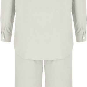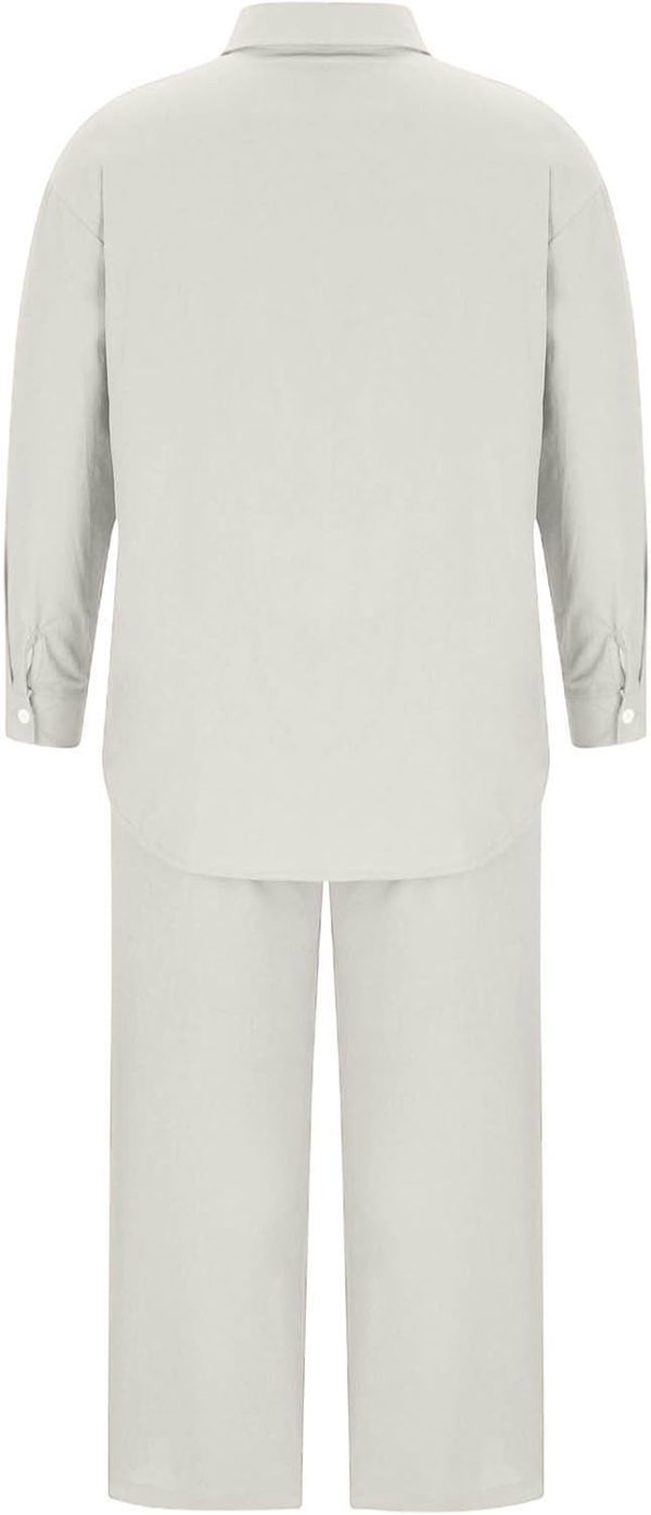 Linen Set for Women Summer 2 Piece Outfits Long Sleeve Shirt Pants Sets