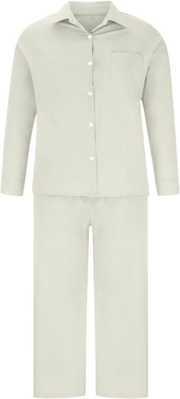 Women’s 2 Piece Outfits Plus Size Linen Long Sleeve Shirt Pants Sets Lounge Sets