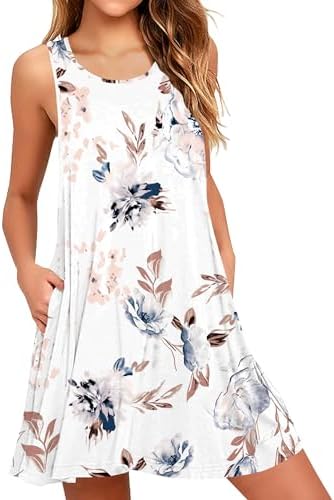 AUSELILY Women Summer Casual Swing T Shirt Dresses Beach Cover Up Tank Dress with Pockets