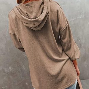 AUSELILY Women’s Hoodies V Neck Drawstring Button Up Casual Pullover Tops Flexible