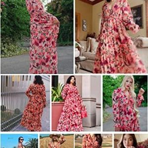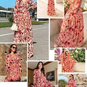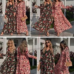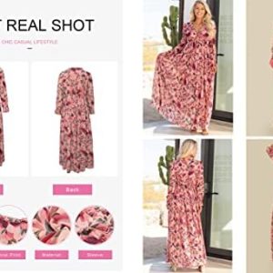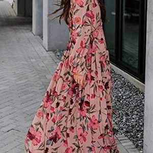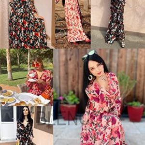 BLENCOT Casual Boho Floral Printed Deep V Neck Maxi Wedding Guest Dresses for Women S-XL