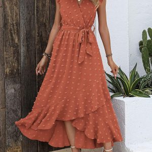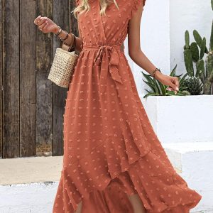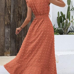 BTFBM Women V Neck Summer Dress 2025 Cap Sleeve Swiss Dot Boho Flowy Ruffle Slit Beach Party Long Maxi Cocktail Dresses