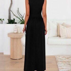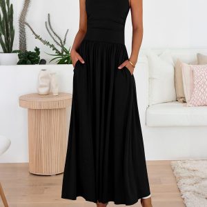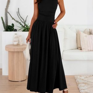 BTFBM Women’s Sleeveless Maxi Dresses Crew Neck High Waisted Sundress Pleated Tank Flowy Trendy Summer Dresses 2025