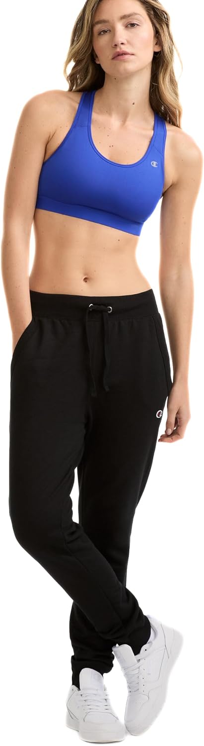 MOVE WITH CONFIDENCE. This racerback sports bra is built for walking, studio, and gym workouts. Crafted with moisture-wicking technology that pulls sweat away from the skin, this comfortable style keeps you feeling fresh and cool. This moderate-support bra has a classic racerback design that allows for easy movement throughout the day and is made of compression fabric for a secure fit. Finished with a reflective Champion C logo, this must-have style is made with a portion of recycled fibers for a feel-good finish.