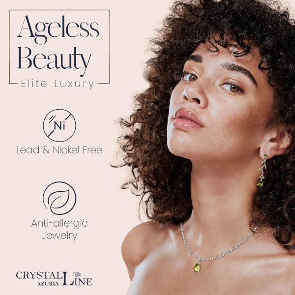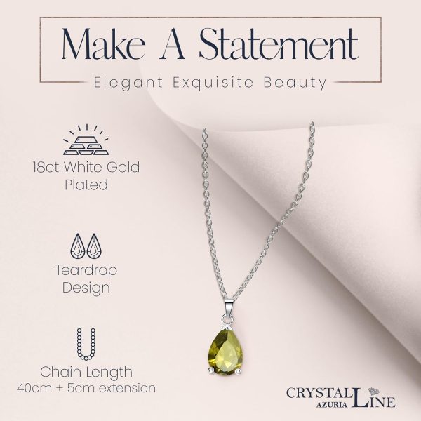 Crystalline Azuria Jewellery Sets for Women Zirconia Crystals Teardrop Necklace and Earrings Set Costume Jewellery for Women Wedding Party 18K White Gold Plated Pendant and Earring Sets