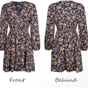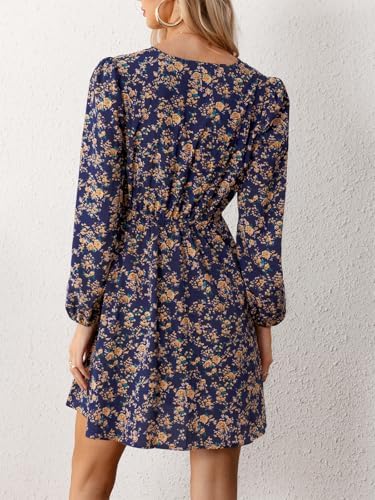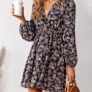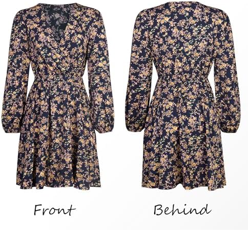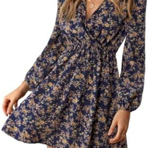 CUPSHE Women’s Floral Ditsy Surplice V Neck Mini Summer Dress Long Peasant Sleeve Elastic Waist A Line Fall Dresses