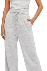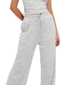 Darong Women’s 2 Piece Outfits Lounge Sets Ruched Short Sleeve Tops and High Waisted Wide Leg Pants Tracksuit Sets