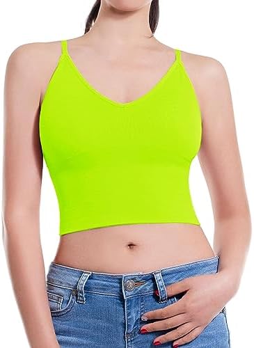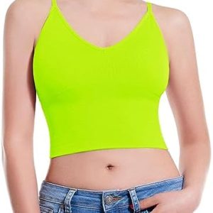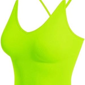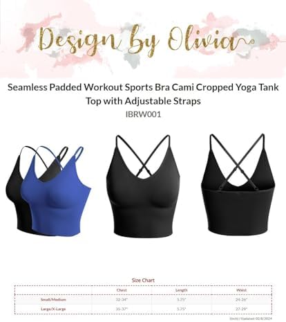Design by Olivia Women’s Seamless Padded Workout Sports Bra Cami Cropped Yoga Tank Top with Adjustable Straps