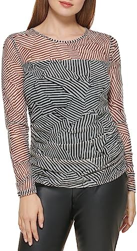 This DKNY Women’s Sportswear Top is a printed long sleeve lined mesh top