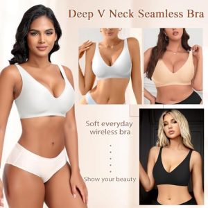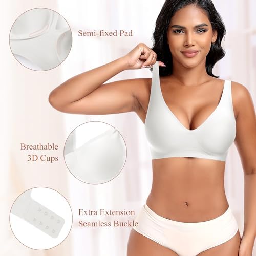 DOCUMO Deep V Bras for Women No Underwire Comfort Wireless Bralettes Adjustable Sleep Seamless Plunge Bra with Bra Extender