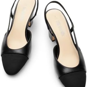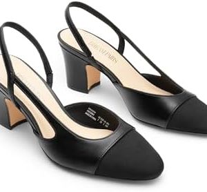 DREAM PAIRS Women’s Closed Round Toe Low Chunky Heels Block Slingback Splicing Fashion Comfortable Casual Pumps Shoes