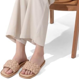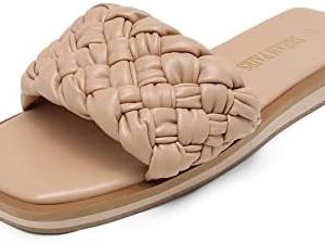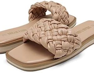 DREAM PAIRS Women’s Square Open Toe Slide Sandals Cute Slip on Braided Strap Rhinestone Flat Sandals for Summer