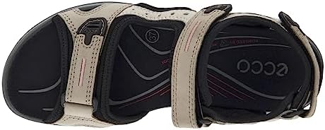 Women’s Ecco, Yucatan Sandal Explore outside of the box in the Yucatan Sandal Nubuck leather and manmade upper Three hook and loop closures give you form-fitting comfort Compression molded midsole offers shock absorption Anatomically contoured footbed supports the foots natural motion Omni-directional rubber outsole bites into varying terrain with outdoor adaptability
