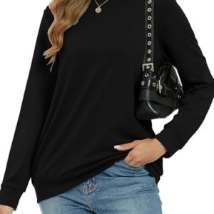 onlypuff Long Sleeve Tunic Tops Casual Sweaters Round Neck