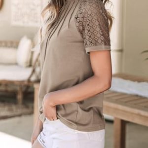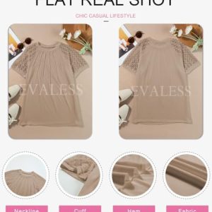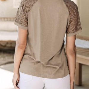 EVALESS Womens Fashion Tops Crewneck Sexy Patchwork Lace Short Sleeve Tee Shirts Ladies Casual Knitted Blouses