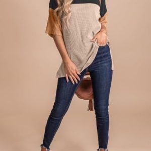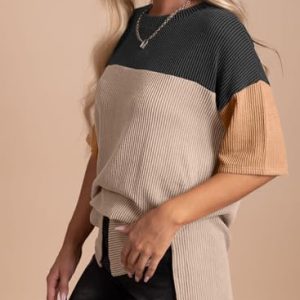 EVALESS Womens Summer Short Sleeve Crewneck Shirts Tops 2024 Fashion Color Block Casual Tunic Top