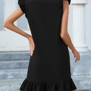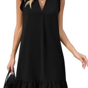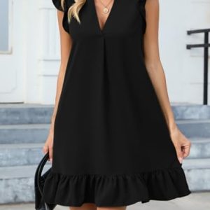 Famulily Women Cap Sleeve Ruffles Hem V Neck Solid Casual Mini Dress for Summer