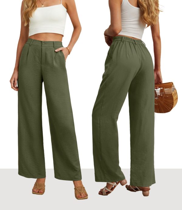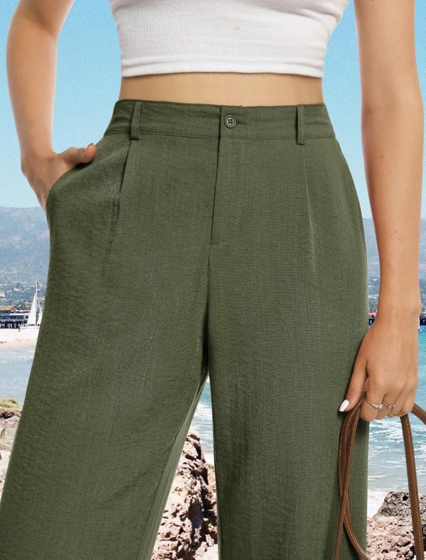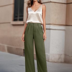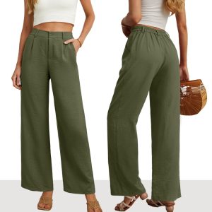 Feiersi Women’s Casual Wide Leg Pants High Waisted Long Trousers Button Down Straight Palazzo Pants with Pockets