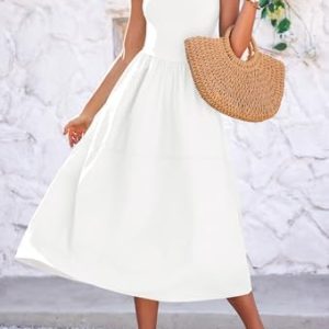 Get ready for summer with our Women’s Sleeveless A Line Midi Beach Dress. This dress is the perfect addition to your summer wardrobe, offering a stylish and comfortable option for casual outings and beach days.