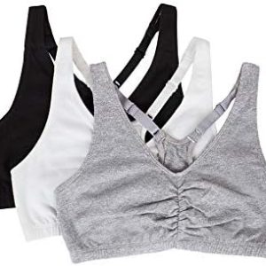 The bras you can count on, the classic Fruit of the Loom Women’s Shirred Front Racerback Sports Bras will have you looking and feeling your best. The sports bra is designed with soft, stretch cotton that gives the most breathable and flexible fit and is constructed with an elastic bottom band to lend you support along the way. Full coverage, shirred front helps with shaping and 2-ply construction comfortably hugs the natural figure while offering modesty without padding. This cotton sports bra has a racerback design that gives plenty of room to move and adjustable straps for best fit. Comfy when you need it most and great for low-impact activities, it’s a bra you’ll be reaching for the most and can be layered underneath tank tops, shirts and sweaters. An active lifestyle requires a brand that can give support and comfort. Fruit of the Loom has been one of America’ s most trusted brands for over 200 years. Our Unconditional Guarantee insures that you get the best product every time or your money back. We promise to deliver quality undergarments at an affordable price…always. Start everyday happy with Fruit of the Loom.