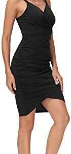 GRACE KARIN Women’s Ruched Bodycon Dress Sexy Spaghetti Straps Cocktail Midi Dresses V-Neck Wedding Guest Dress