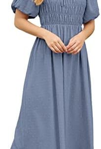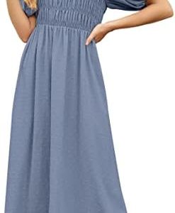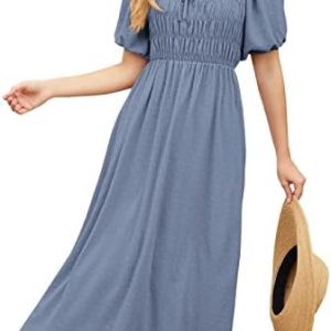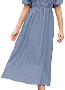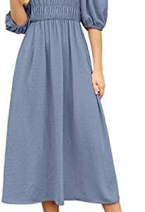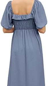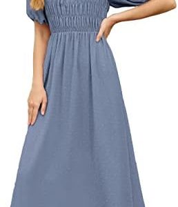 GRECERELLE Womens Summer Casual Square Neck Puff Sleeve Boho Midi Maxi Dress Swiss Dot Elegant Cocktail Long Dresses