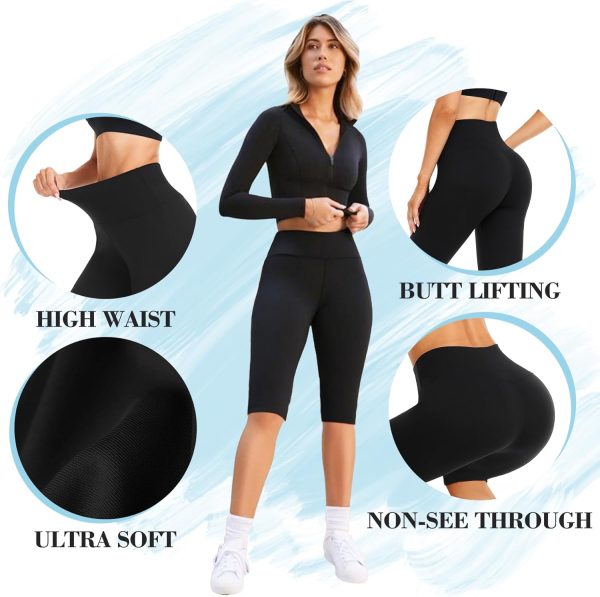 GROTEEN Women’s Knee Length Capri Leggings – High Waisted Yoga Pants Workout Running Biker Shorts for Summer
