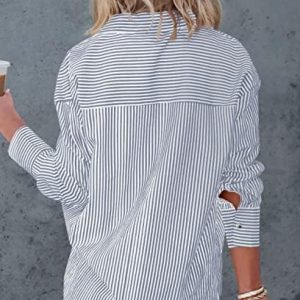 Hellobaby Womens Striped Button Down Shirts Classic Long Sleeve Stylish Collared Office Work Blouses Tops