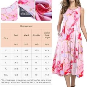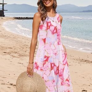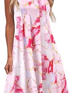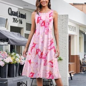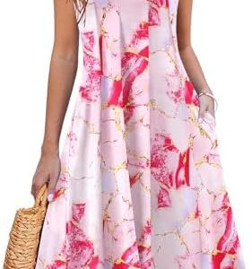 Hotouch Summer Casual Dresses for Women Sleeveless Midi Dress Swing Tank Sundress Pleated Tshirt Dress with Pockets