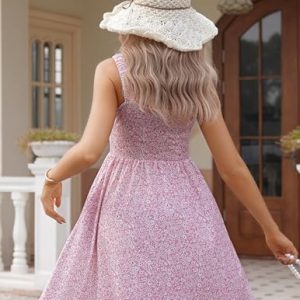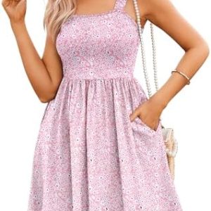 Hotouch Women’s Summer Dress Floral Square Neck Sleeveless Casual Dress with Pockets A-line Swing Mini Dresses Sundress