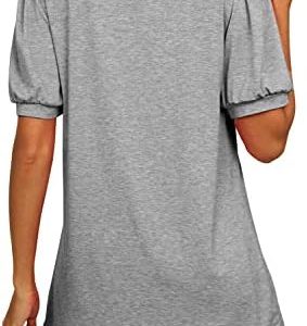 isermeo Summer Tops for Women Loose Fit Short Puff Sleeve Shirts Square Neck Tunic Tops S-XXL