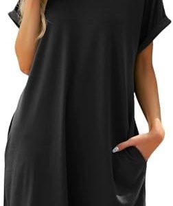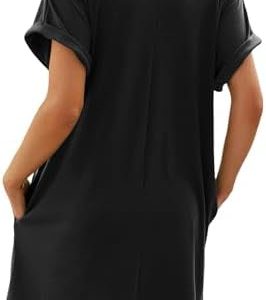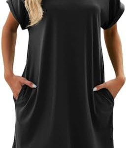 isermeo Women Summer Casual Swing Rolled Sleeve T Shirt Dresses Beach Cover Up Loose Dress with Pockets S-XXL
