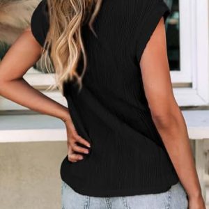 isermeo Womens Short Cap Sleeve Textured Summer Tops Crewneck Knit Loose Casual Basic Tee Shirts Blouses