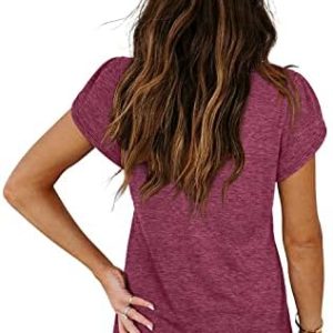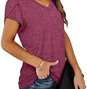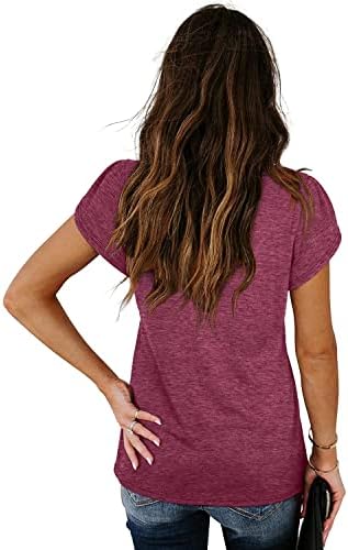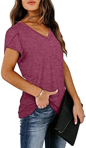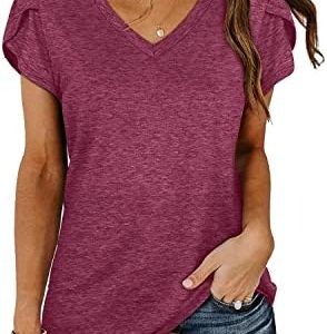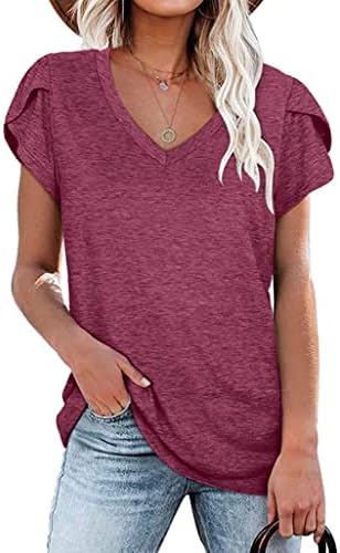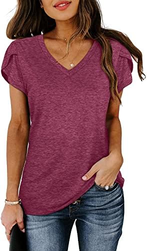 isermeo Womens Summer Tops Sexy V Neck Petal Sleeve Casual Solid Color Tee Tshirts S-XXL