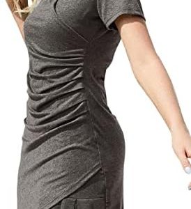 Jaysreate Women’s Casual Summer Dress Ruffle T Shirt Ruched V Neck Tunic Short Sleeve Sun Dress for Women Beach Wear
