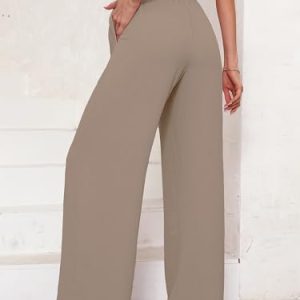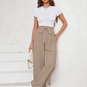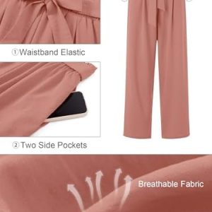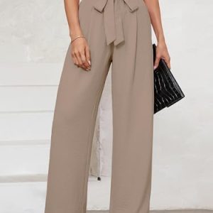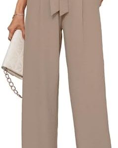 KORSIS Wide Leg Pants for Women Lightweight Waisted Adjustable Tie Knot Loose Comfy Casual Trousers with Pocket S-2XL