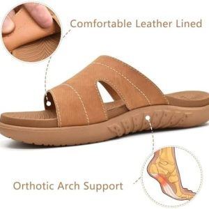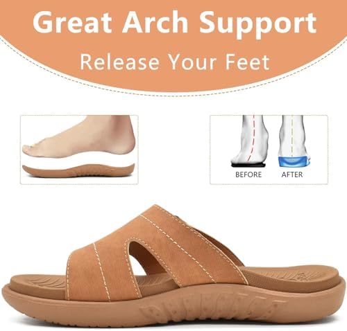 KuaiLu Womens Fashion Orthotic Slides Ladies Lightweight Athletic Recovery Yoga Mat Sandals Slip On Thick Cushion Slippers Sandals With Comfortable Plantar Fasciitis Arch Support