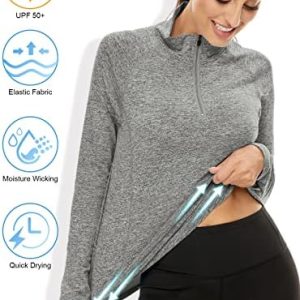 Luranee Womens UPF 50+ Long Sleeve 1/4 Zip Pullover Athletic Hiking Running Workout Tops