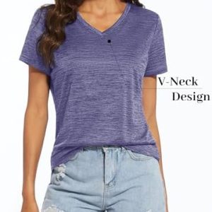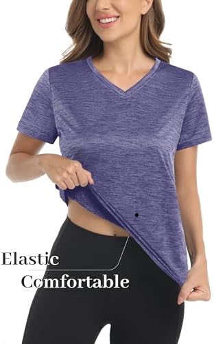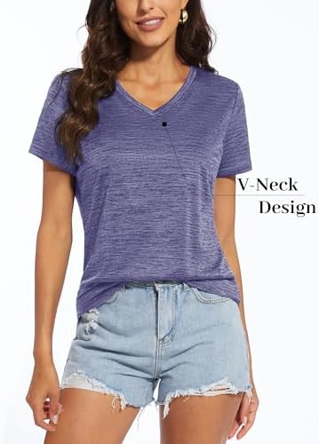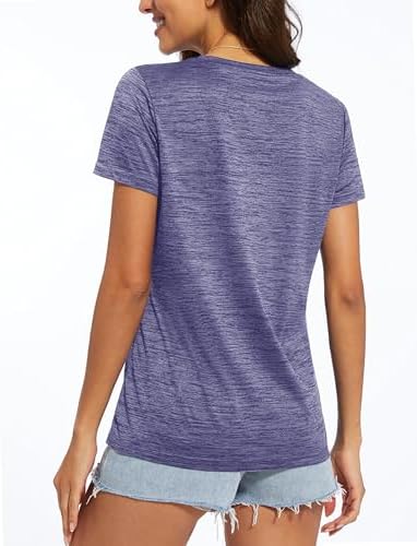 MAGCOMSEN Women Workout Shirts Short Sleeve Tops V-Neck Outdoor Gym Running Athletic Quick Dry Lightweight T Shirts