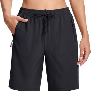 MAGCOMSEN Women’s Hiking Shorts Lightweight Quick Dry 8″ Golf Athletic Workout Shorts 3 Zipper Pockets Water Resistant