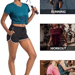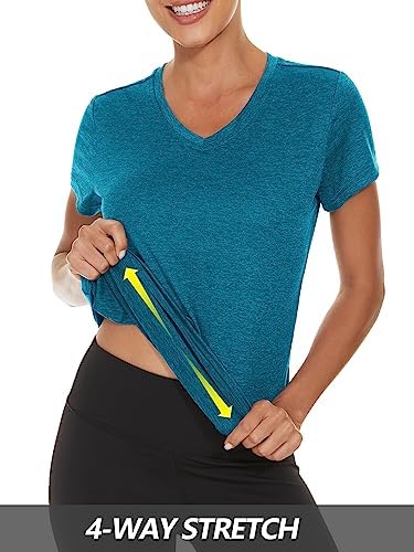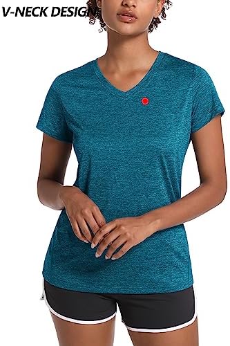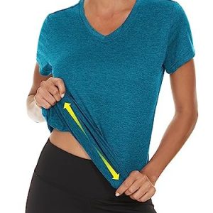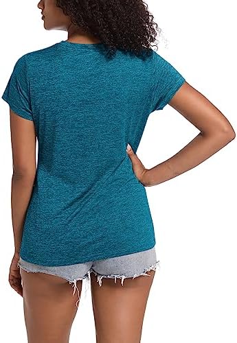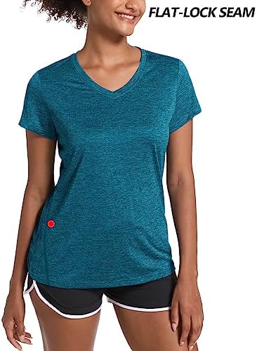 MAGCOMSEN Women’s Quick Dry V Neck T-Shirt Short Sleeve Athletic Workout Top Running Swim Tee