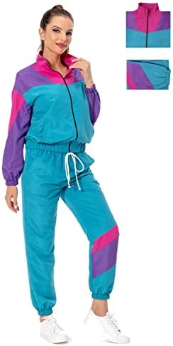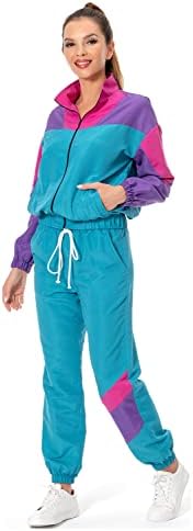 MASSWO 1980s Track Suit Adult Women Athletic Training 2 Piece Lightweight Tracksuit Sweatsuits Sets Sports Zipper Hoodie Jogger Yoga Outfits