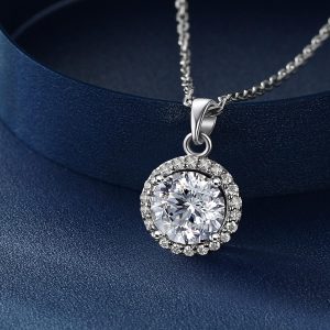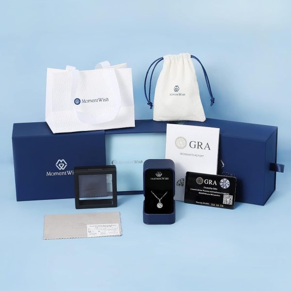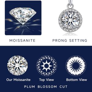 MomentWish Moissanite Necklace, Anniversary Necklace for Women, D Color VVS1 Simulated Diamond 925 Sterling Silver Halo Necklace