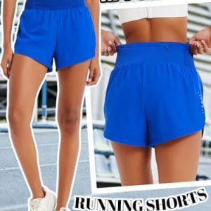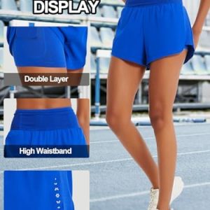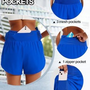 MYSSUCI 2 in 1 Running Shorts Women High Waisted Athletic Shorts for Women with Zipper Pocket Workout Jogging Sport Shorts