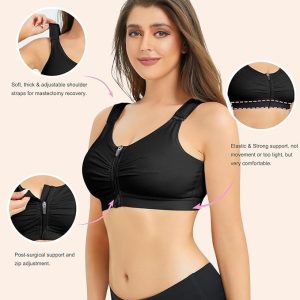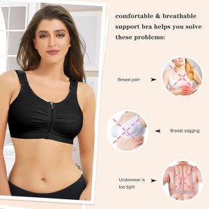 Nebility Zip Front Closure Sports Bra for Women Everyday Support Bra Compression Workout with Adjustable Straps Wirefree