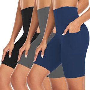 NEW YOUNG 3 Pack Biker Shorts for Women with Pockets High Waisted 8”Tummy Control Black Workout Yoga Short Pants