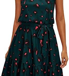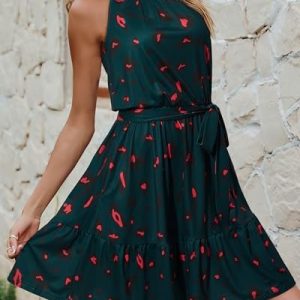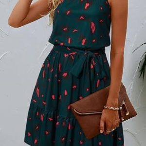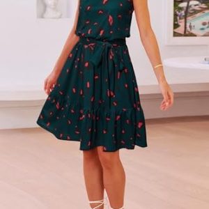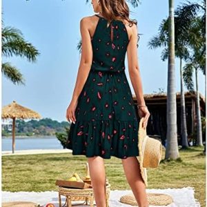 Newshows Women’s Summer Halter Black Dresses Casual Sleeveless Ruffle Sundress with Pockets