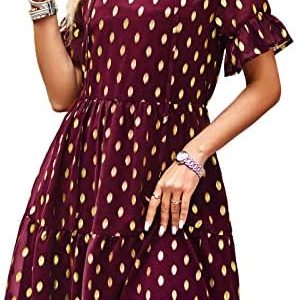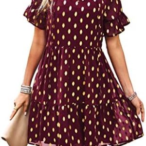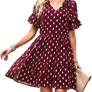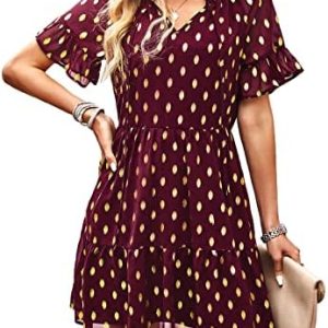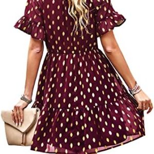 OUSIMEN Women’s Dresses Casual Summer V-Neck Ruffle Dot Short Sleeve Party Dress S-XL