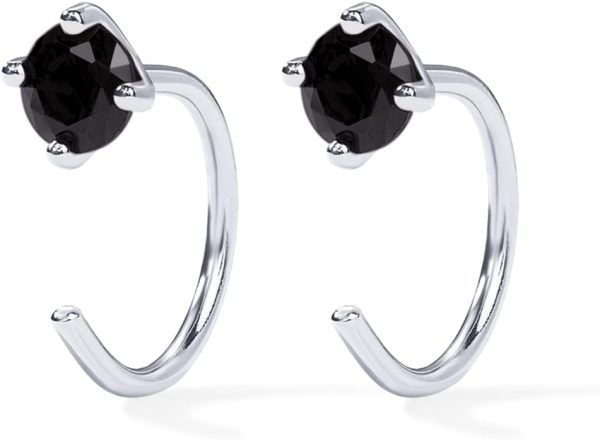 PAVOI 14K Gold 925 Sterling Silver Huggie Half Hoop Earrings for Women | Tiny Boho Colored Cartilage Earring | Blue, Green, Amethyst, Garnet, Black CZ, Turquoise, Opal, Pearl