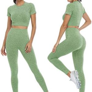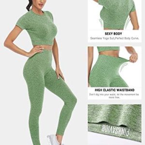 PINKSAVIOR Workout Sets for Women Two Piece Outfits Seamless High Waist Leggings Yoga Crop Tops Athletic Sports Gym Sets